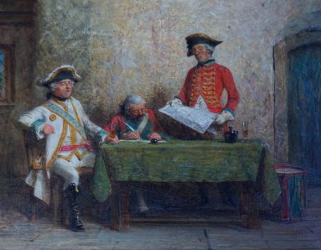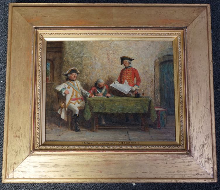 Good untouched condition, paint clean, fine but stable craquelure throughout, probably the original gilt frame with title, with slight small dents and knocks.