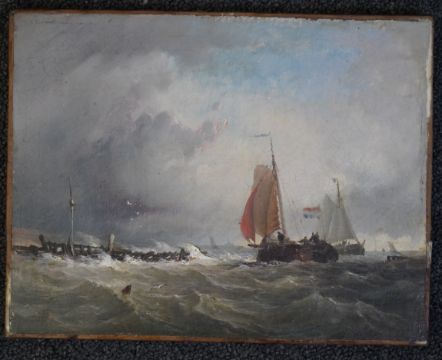 Oil on canvas relined many years ago, canvas remains tight and paint in good clean condition, a little scattered craquelure, some retouching in the corners, indistinct inscription verso.