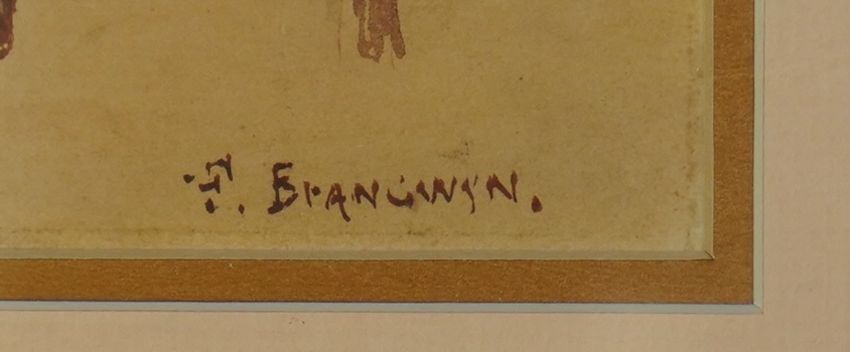 Watercolour on paper remounted so the extreme margin is more colourful than elsewhere, the original inner now rather faded but still with fair strength of colour, under glass in a modern mount and plain wood frame.
