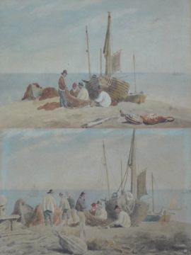 Fishermen and boats on Brighton beach