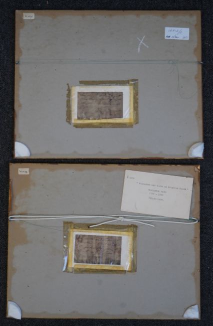 Both watercolours with acid staining throughout the paper, colours somewhat faded, one signed, both with old inscribed labels verso dated c.1820