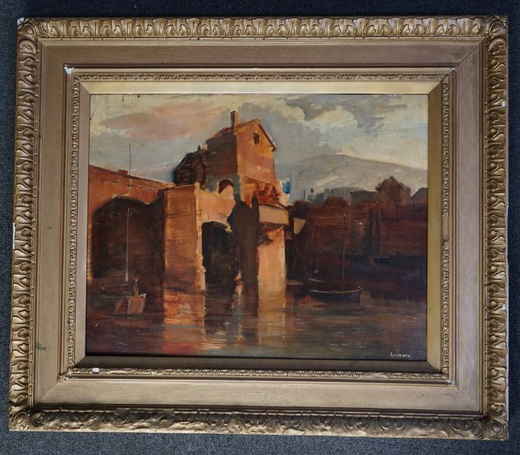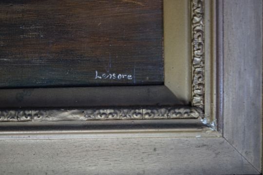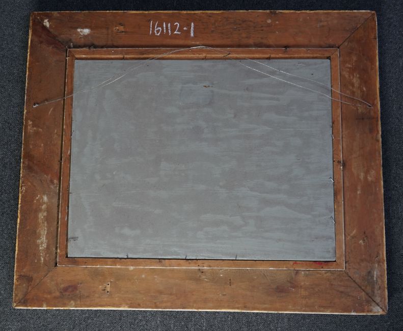 Oil on panel slightly neglected with dirt marks and small scratches to the paint, housed in the original but overpainted gesso frame which is now rather tatty, no labels verso.