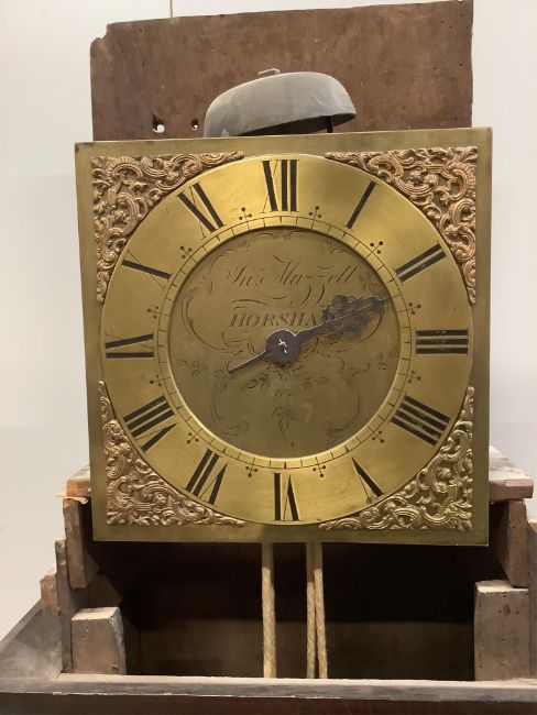 An 18th century oak thirty hour longcase clock by Jno. Muzzell, Horsham, height 183cm. Condition - poor