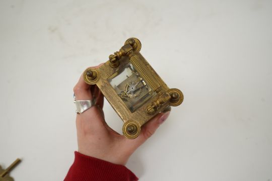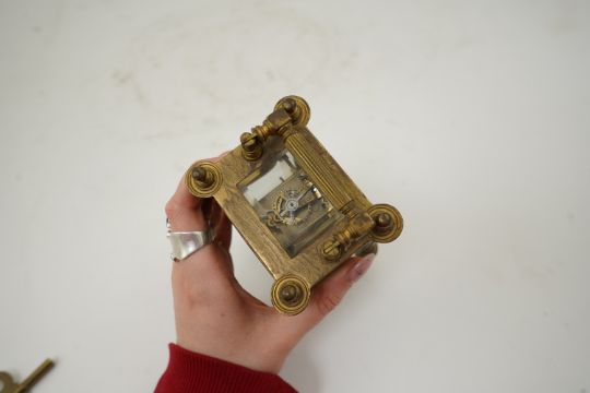 Looks to be in honest untouched condition, much of the gilding has now rubbed away from the extremities but no other faults noted, top plate looks original, movement going but not tested for timekeeping, comes with a single, probably original, key.