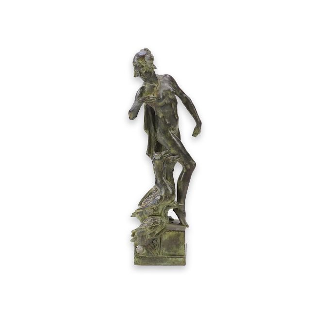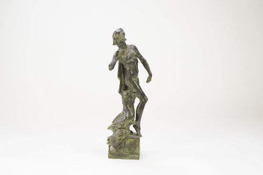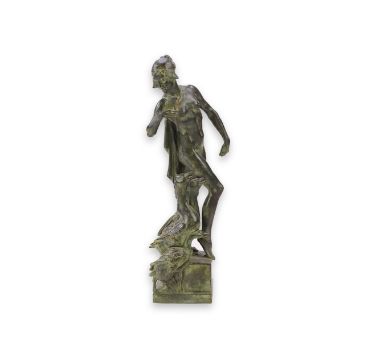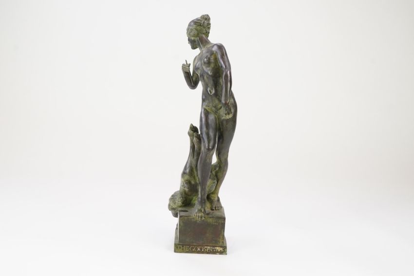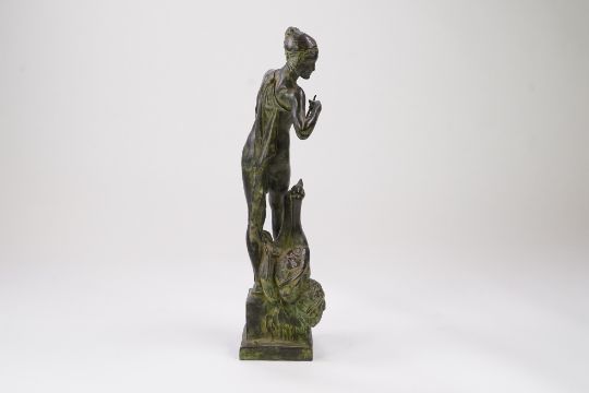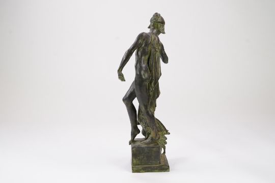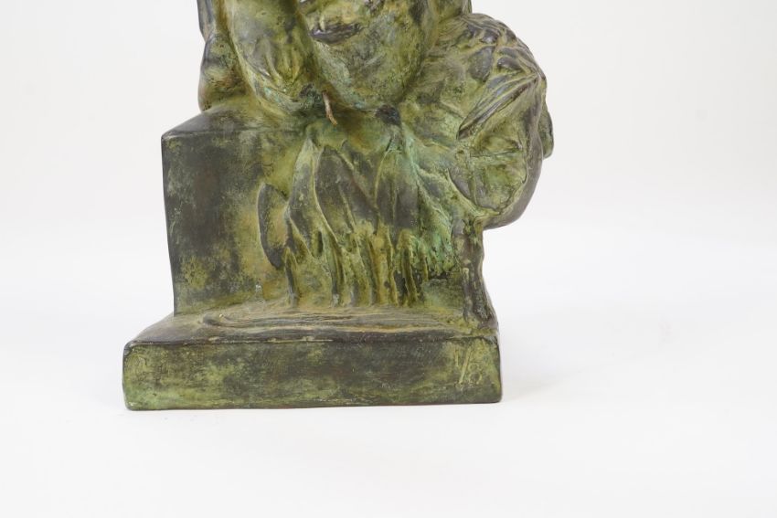 Honest untouched condition, a rather dark blackish brown patination shading to a light matted green, some scattered dirt marks but overall looks to be in good condition.