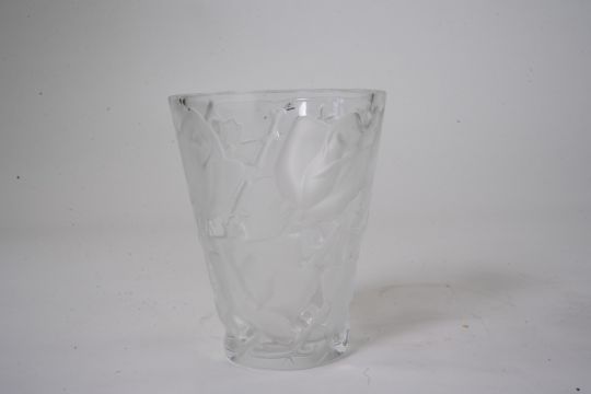 A large Lalique Cristal ‘Isfahan Rose’ vase, post war, engraved signature ‘Lalique (R) France’ to the edge of the foot, 23.5cm high