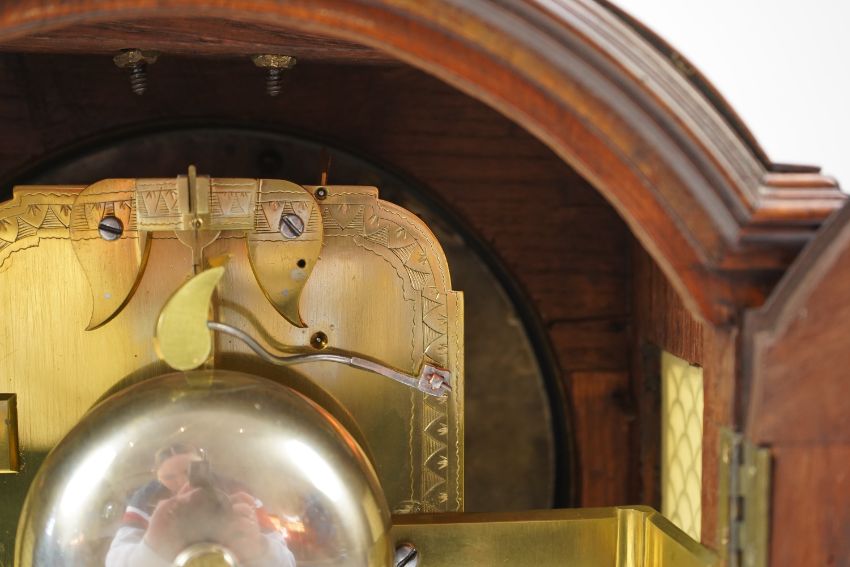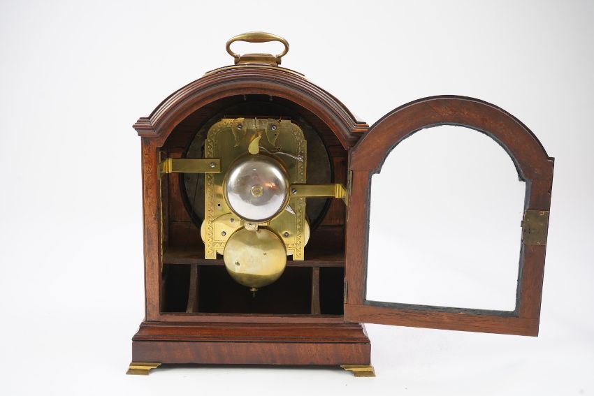 Looks to be in good condition, probably restored some years ago, case of a light brown mahogany tone and even colour and polish, one or two fine cracks and separations through the wood but nothing of any serious note, original key working the front door lock, dial looks to have been repainted and renamed, back door with original key and lock, movement looks complete but not tested for timekeeping and comes with an associated winding key.