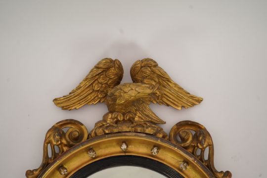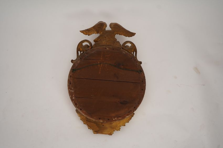 Original but somewhat neglected condition, some splits running through the carved eagle, further rubbing, splits and losses around the main frame, plate possibly a later replacement.