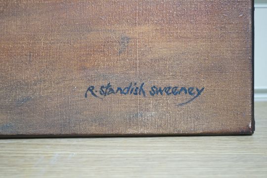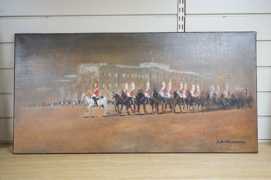 R. Standish Sweeney (1917-1995), oil on canvas, 'Changing the Guard', signed, 47 x 90cm, unframed. Condition - good