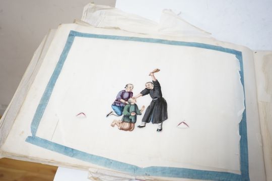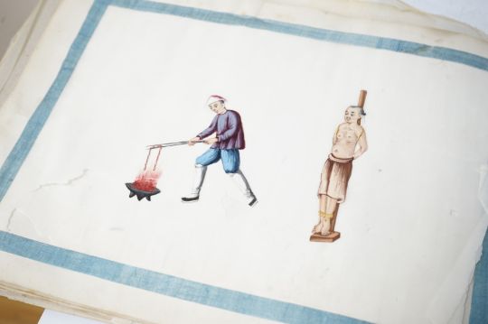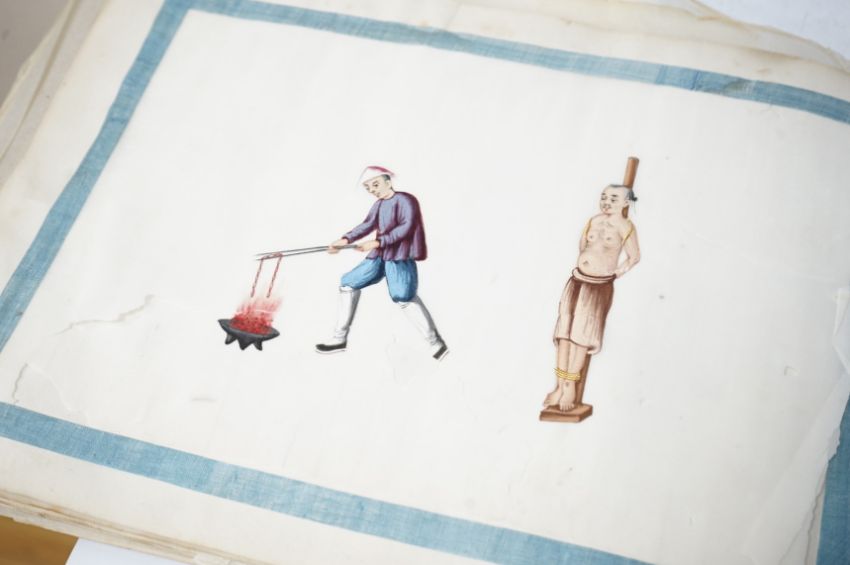 Chinese paintings on rice paper, torture themes, 30cm wide. Condition - variable
