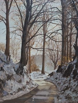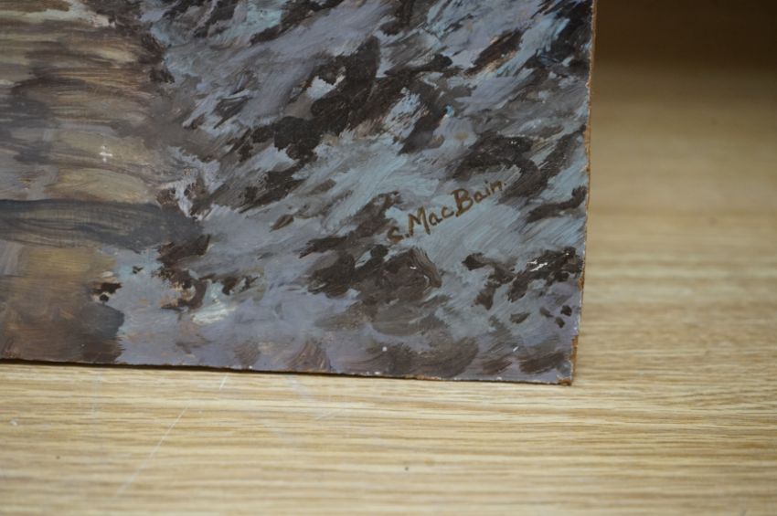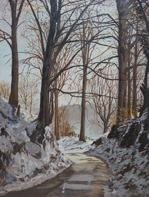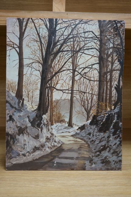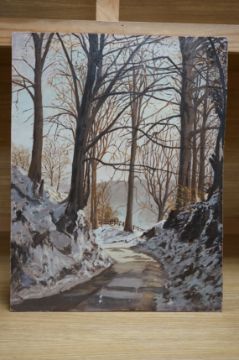 C. McBain, oil on board, Tree-lined pathway in winter, signed, 46 x 35cm, unframed. Condition - fair to good