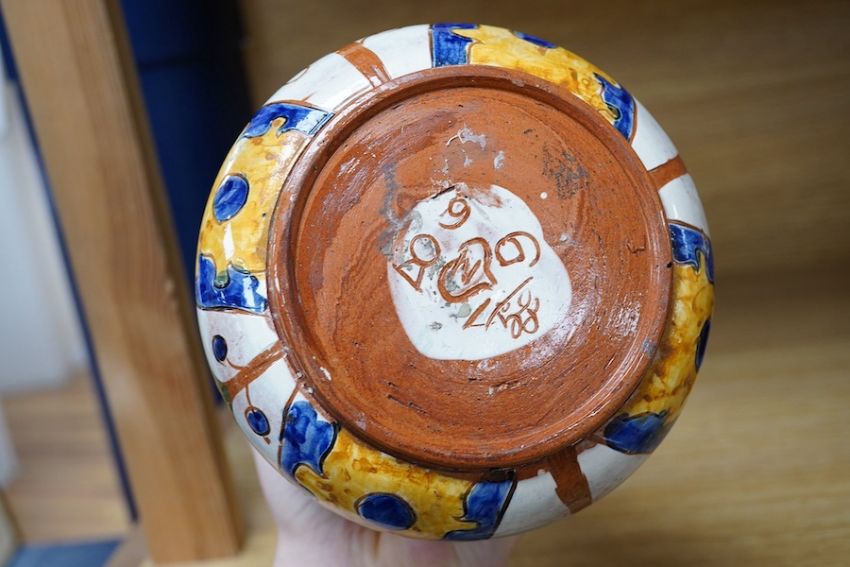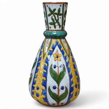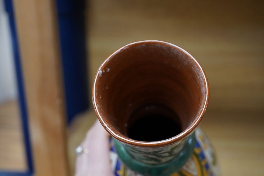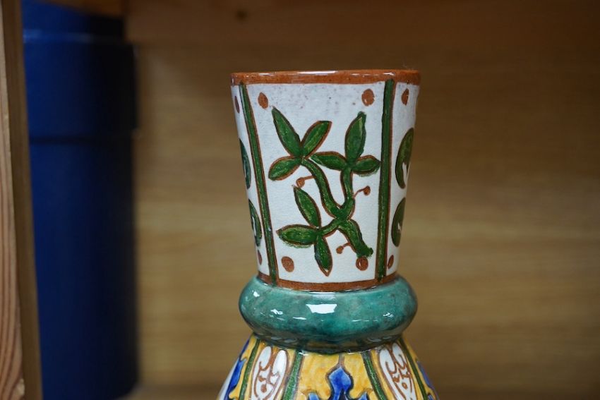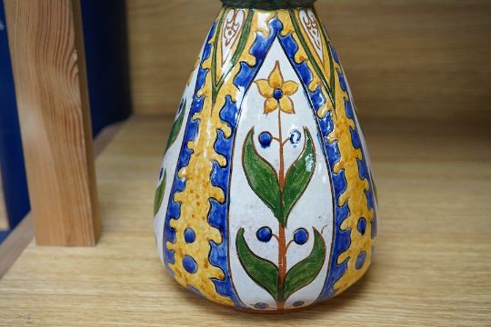 Carlo Manzoni, style of Della Robia, earthenware Art Nouveau vase decorated with stylised flowers, 27cm high. Condition - good
