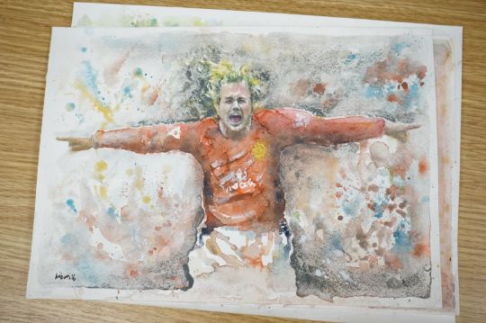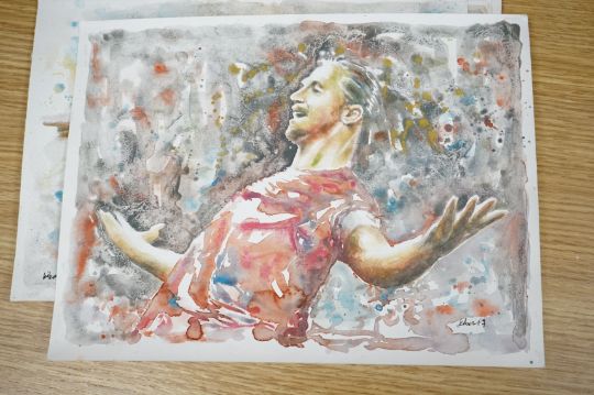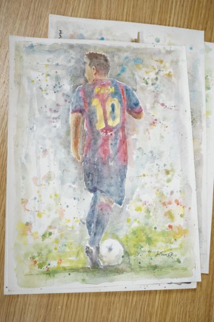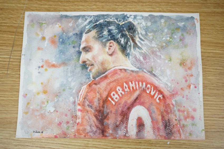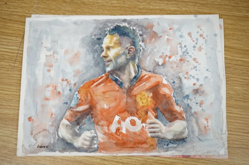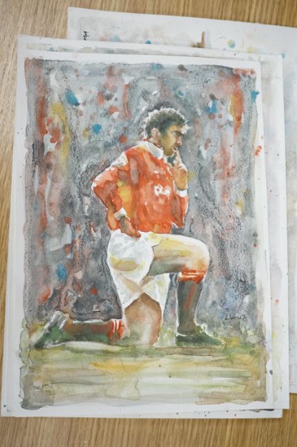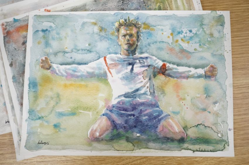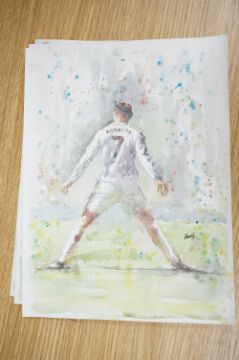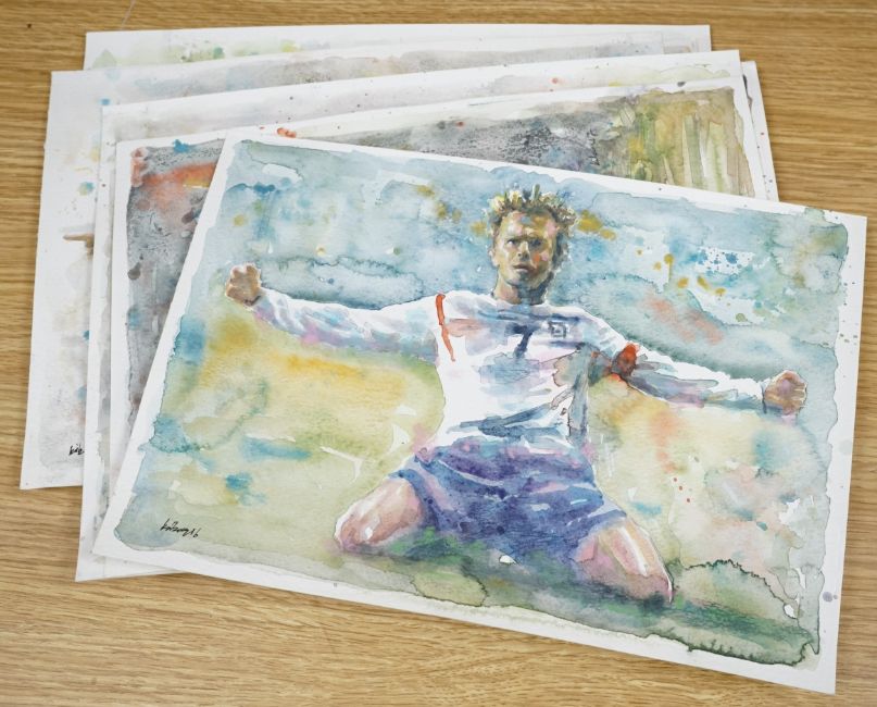 Baris Ali Kibar (Contemporary), a collection of nine unframed watercolours, Football players to include Ronaldo, Messi, Beckham and Ibrahimovic, each signed, 21 x 29cm. Condition - good