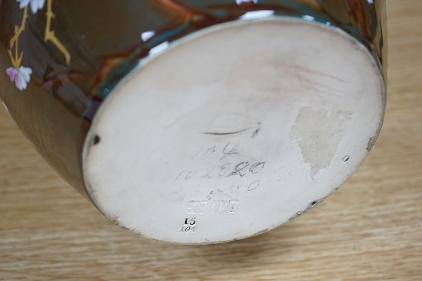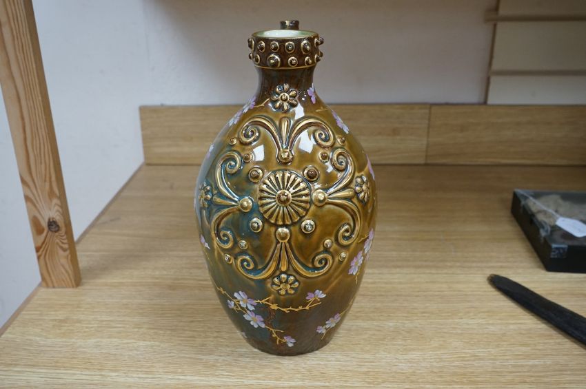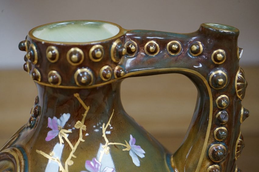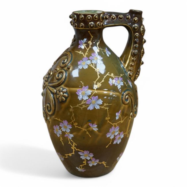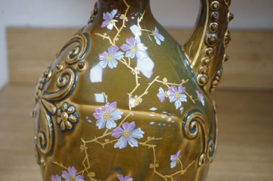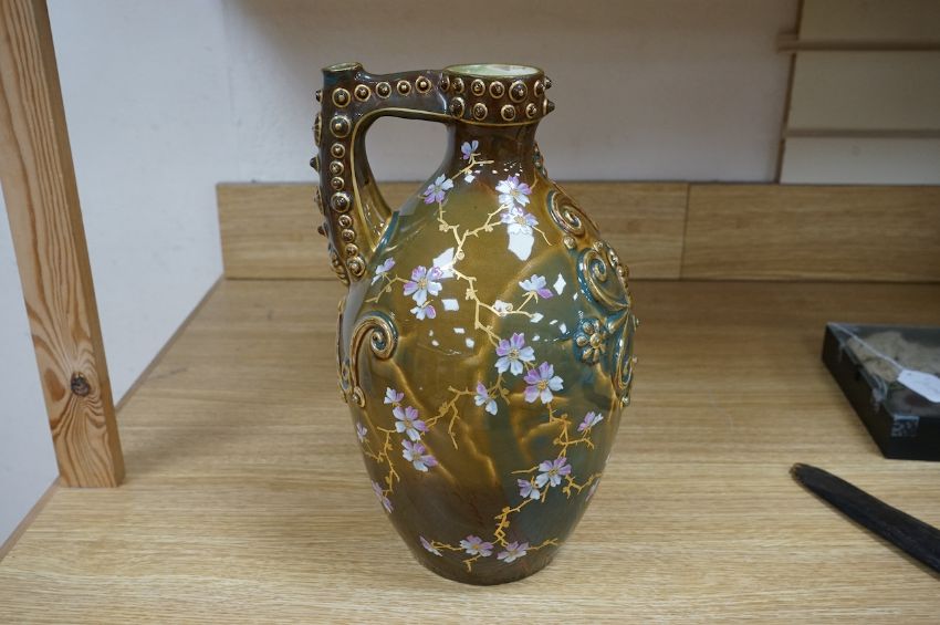 A large Zsolnay brown bodied ewer, with gilt decoration, 33cm high. Condition - good