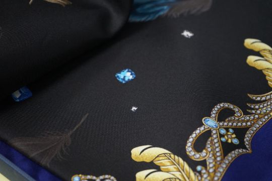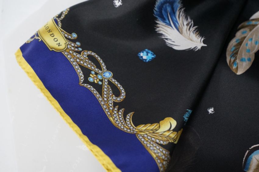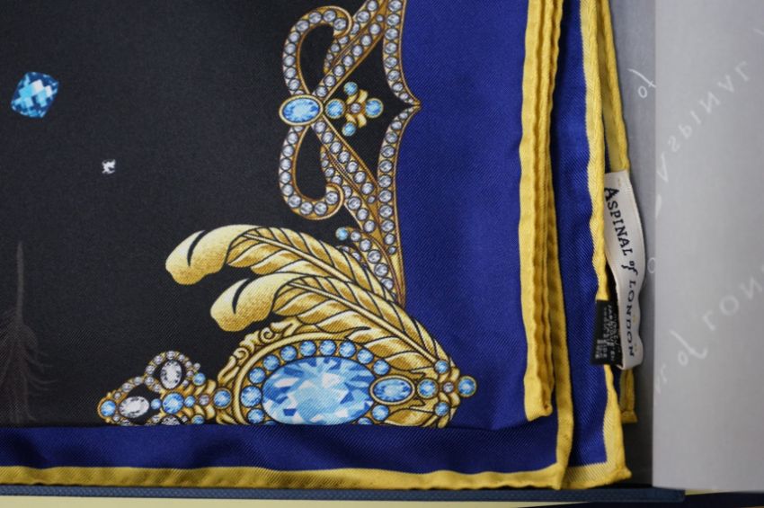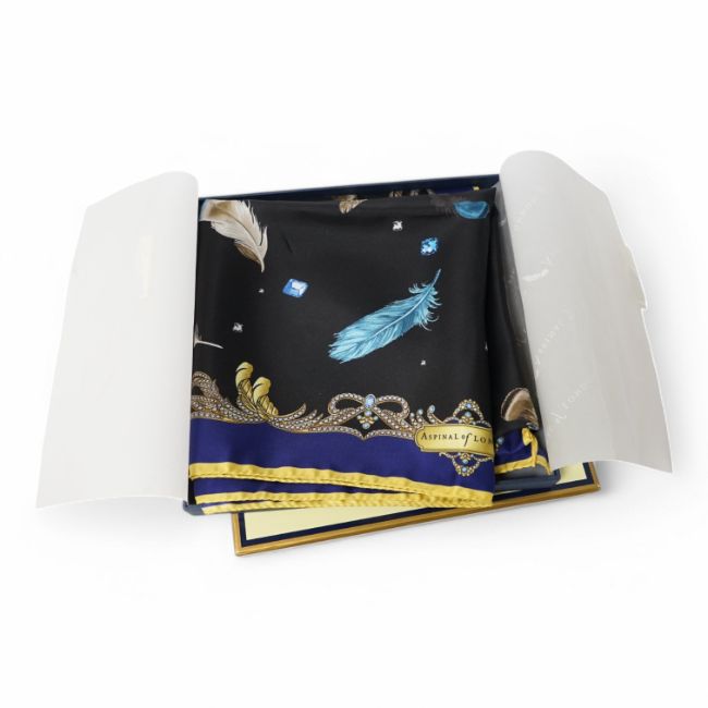 Aspinal of London silk scarf, with a printed feather design, boxed, 80cm x 85cm. Condition - good