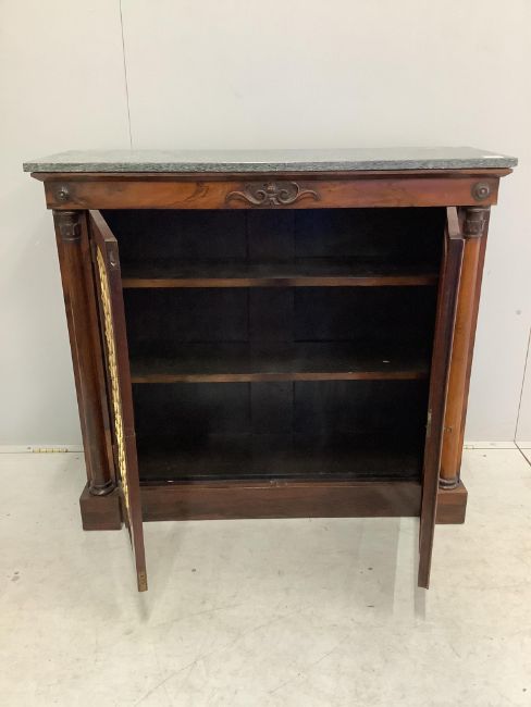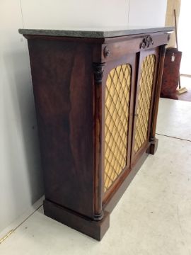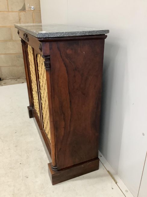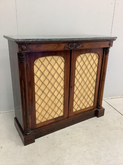 A William IV rosewood marble top side cabinet, width 106cm, depth 37cm, height 96cm. Condition - fair to good