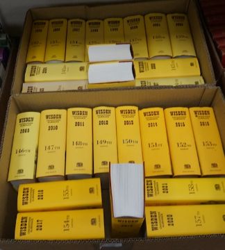 ° ° Wisden Cricketers' Almanack, 1995-2021, (27 vols.) many photo illus. (incl. coloured plates), adverts.; publisher's gilt lettered cloth (or faux leather), d/wrappers