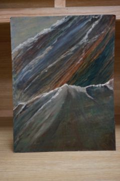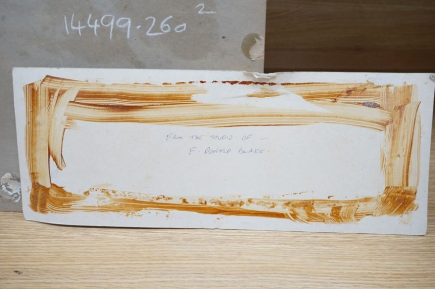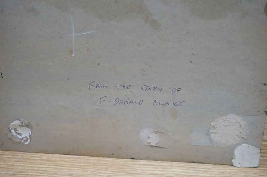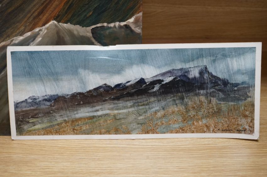 From the Studio of Frederick Donald Blake (1908-1997), pair of varnished mixed medias, Mountain ranges, one signed, each inscribed verso, 45 x 33cm, unframed