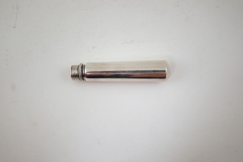 A few small dents to the outer case including the top. Outer case unmarked. Doesn't quite screw down flush with the case. Marks on scoop clear.