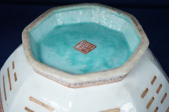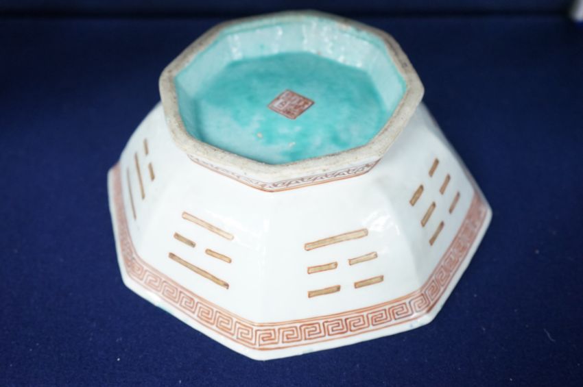 A Chinese enamelled porcelain ‘Eight Trigrams’ bowl, four character Tongzhi seal mark and of the period (1862-1874), 19.5cm wide