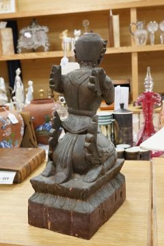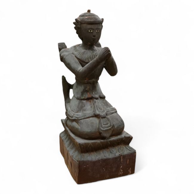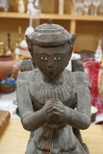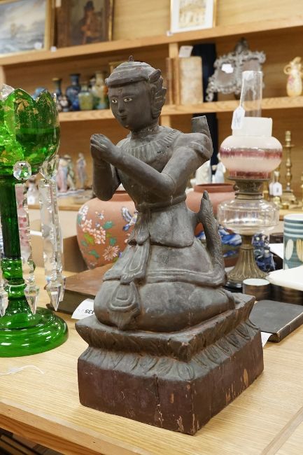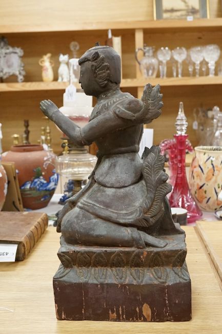 A Thai lacquered wood figure of a kneeling deity, 46cm high.