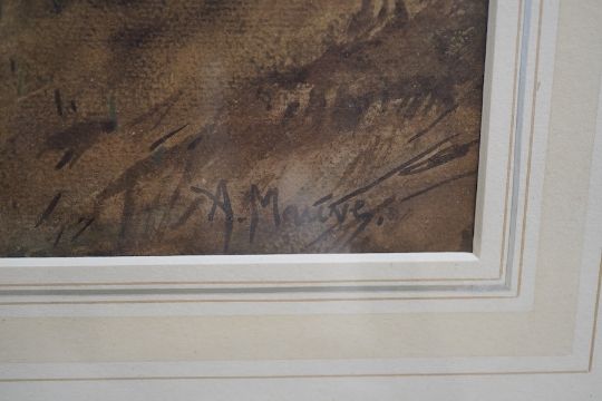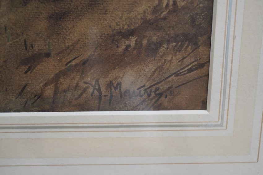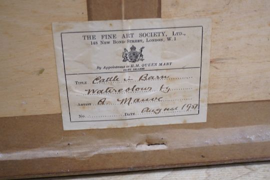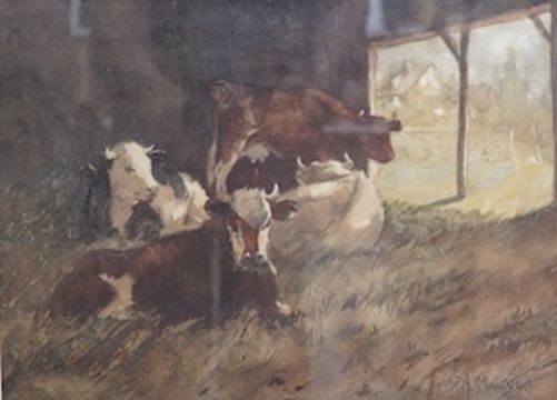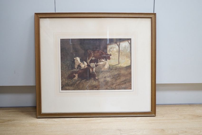 Anton Mauve (Dutch, 1838-1888), Study of resting cattle in a barn, signed, Fine Art Society inscribed label verso, watercolour, 25 x 35cm