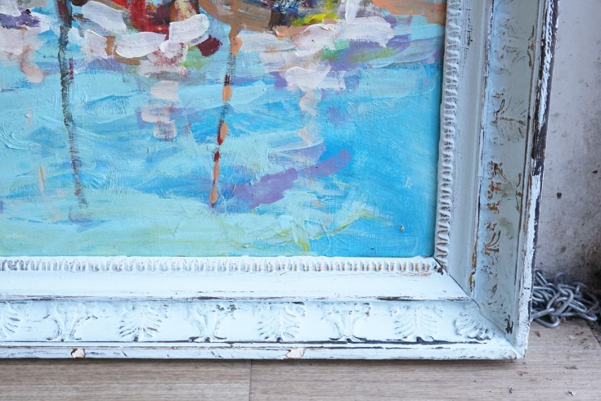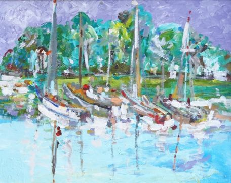 Impressionist style, ‘Boats, Lymington, New Forest’, oil on board, 54 x 68cm