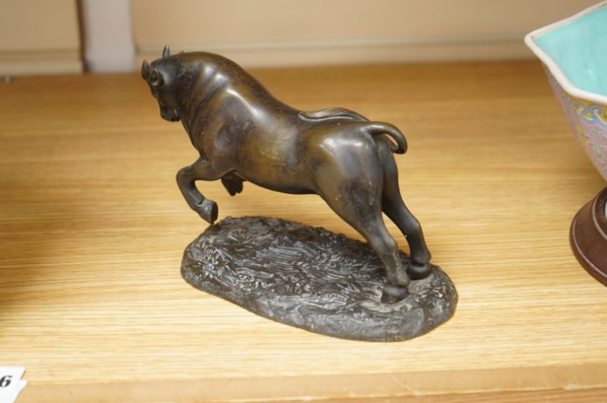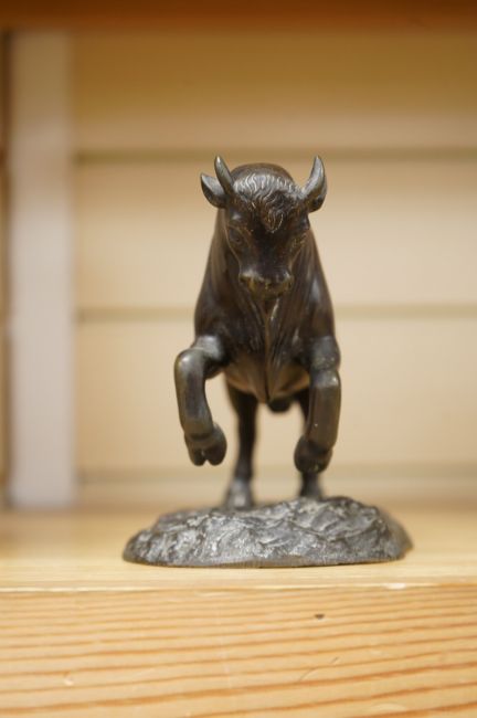 A late 19th century bronze model of a rearing bull, unsigned, 17cm wide