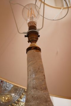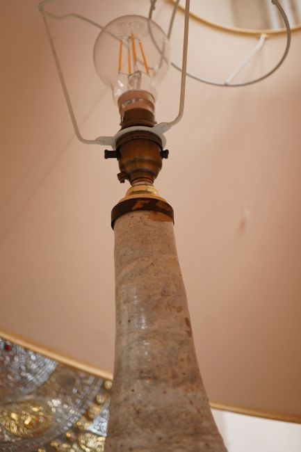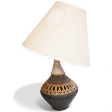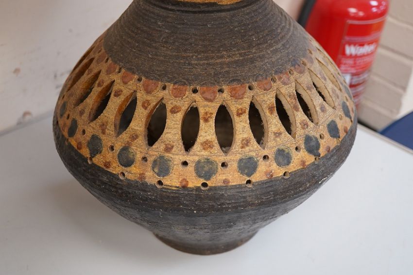 A Roche Bobois stoneware lamp with incised decoration, with shade, 82cm high overall